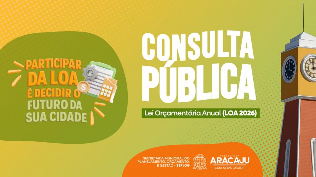 Com o objetivo de fortalecer a participação popular e garantir ainda mais transparência às ações da gestão, a Prefeitura de Aracaju, por meio da Secretaria Municipal do Planejamento, Orçamento e Gestão (Seplog), está abrindo consulta pública para elaboração da Lei Orçamentária Anual (LOA) 2026. Para a população participar, basta acessar e responder o formulário do Google Forms, disponível no site oficial a partir desta segunda, 20, ou por meio deste link.